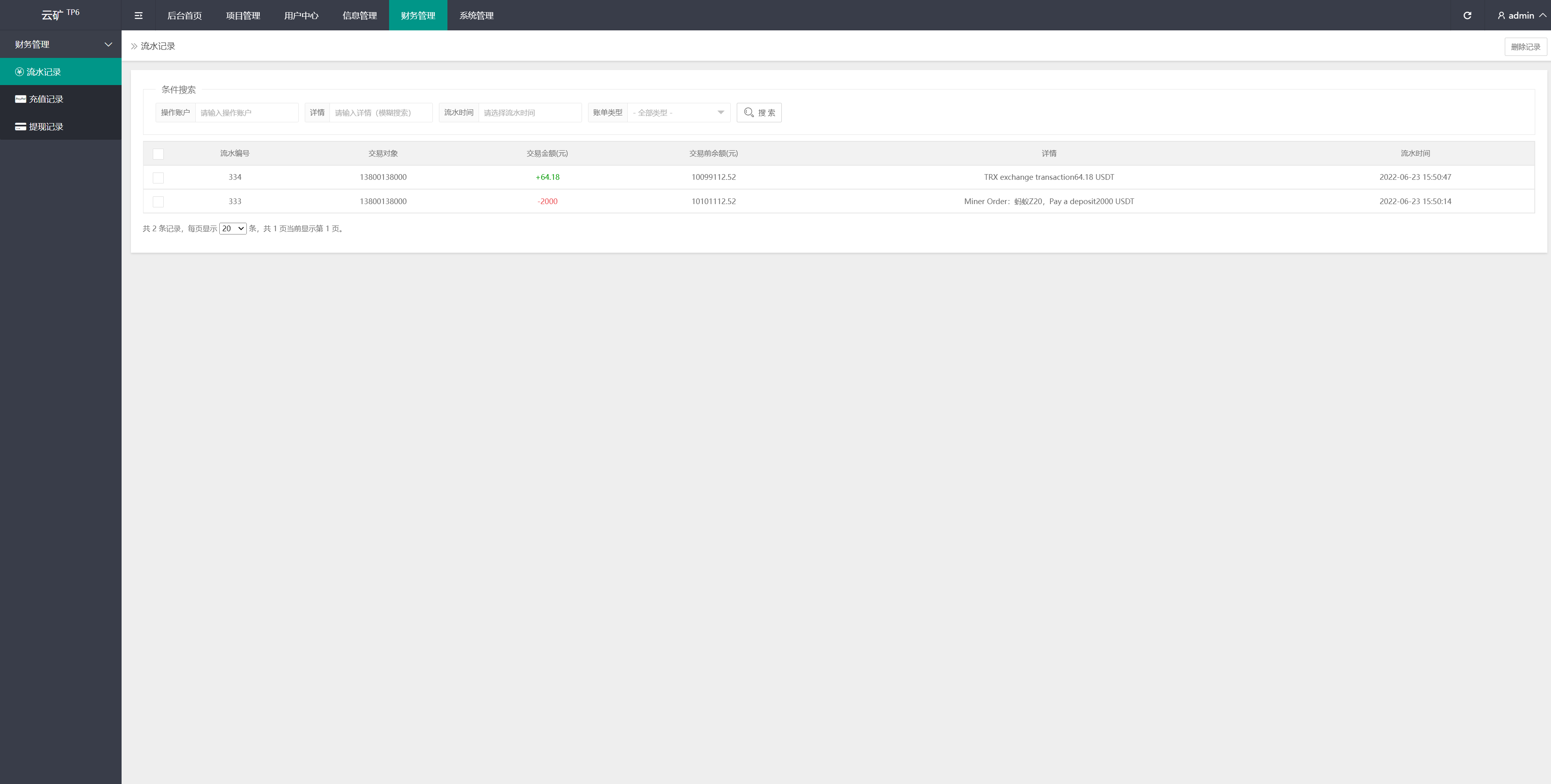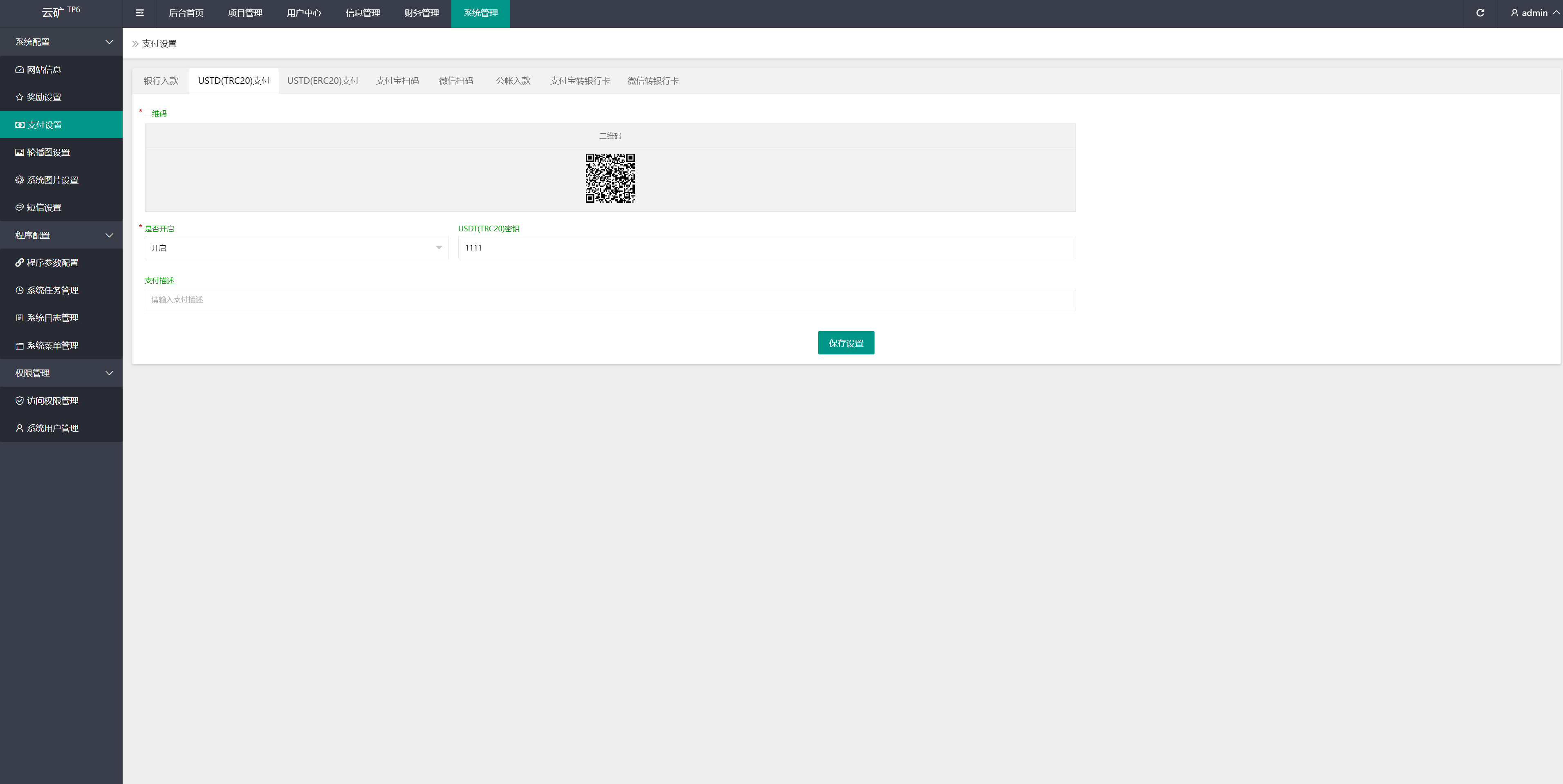 充币依然使用usdt充值,使用usdt购买矿机获取TRX收益