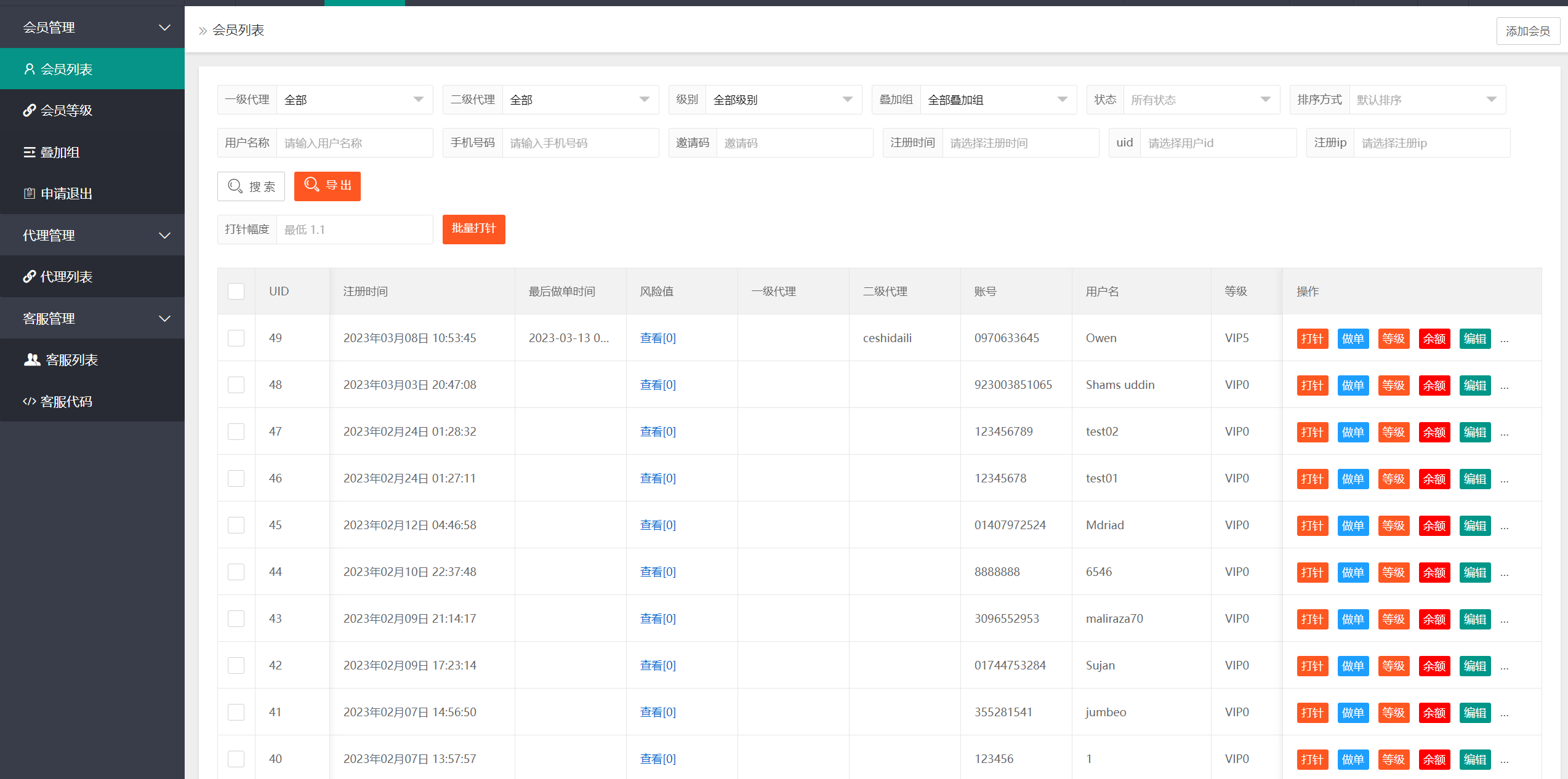 此套别人二开的海外抢单刷单系统,新增用户风险值、最后做单时间